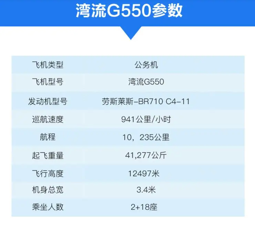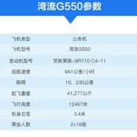 湾流G550还是世界上用途广的喷气公务机,它能够从一条1066米长的跑道上起飞,适应各种小型机场,这在大型机场较少的中国尤其合适。湾流G550配备两台推力高达6.8吨的劳斯莱斯 BR710型发动机,能搭载 8名乘客和 4名机组人员,连续不间断飞行12501公里。湾流G550能载19名乘客,还能很轻易的克服高海拔、大风等不良因素,任何时候都能够把你送到想去的地方。